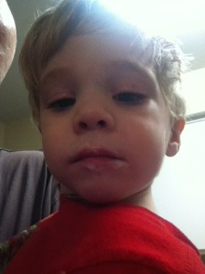 Earlier today, John really wanted a cookie (he calls them cakies). I informed him he needed to eat his food first, and then he could have dessert when we came home. He proceeded to have a pretty good meltdown, complete with a healthy portion of tears and carrying on.