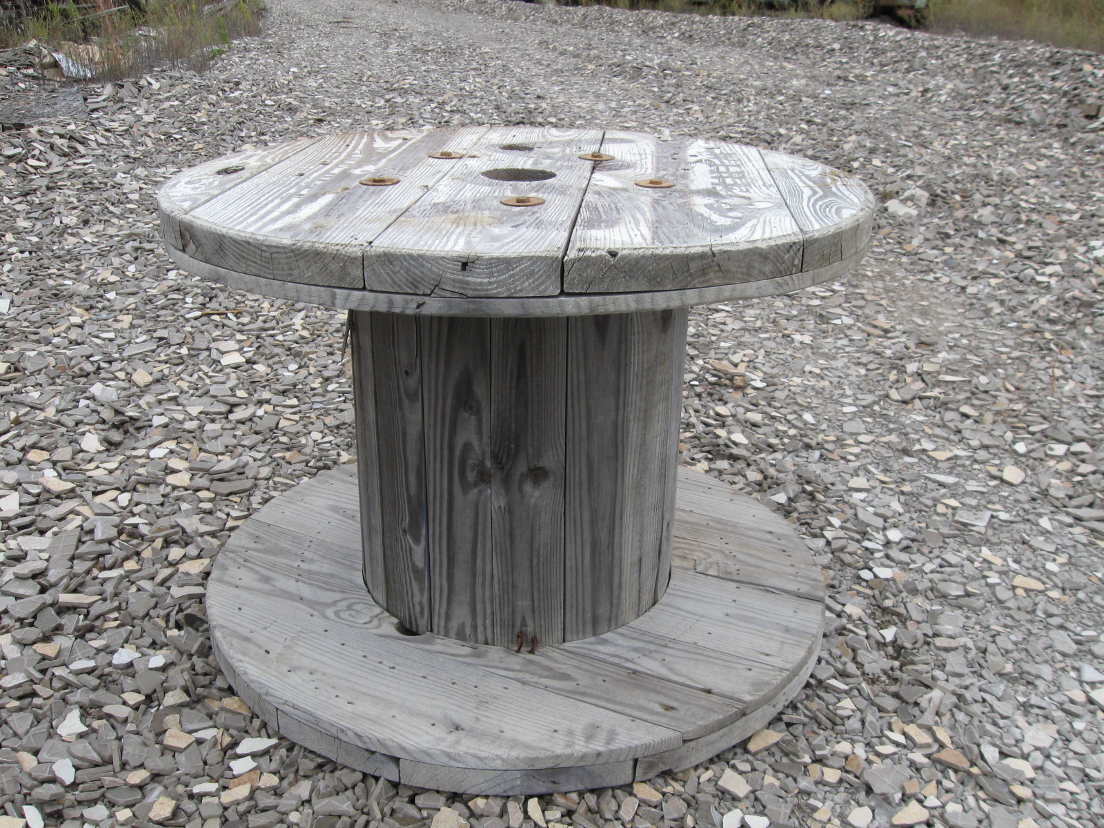 My friends and I found this huge wooden spool when I was in junior high school–almost exactly like the only pictured below. It was at the base of a telephone pole near my house, and clearly had been used to hold some kind of telephone wire. The “wheels” of the spool were about the size of a small car tire, and it was heavy enough that we just rolled it back to my friend’s house. We knew we could do something with it.