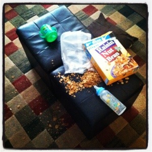 After jamming my fingers into his mouth to fish out the offending meat, he decided he was going to have a chat with the man next to us about the playground equipment.